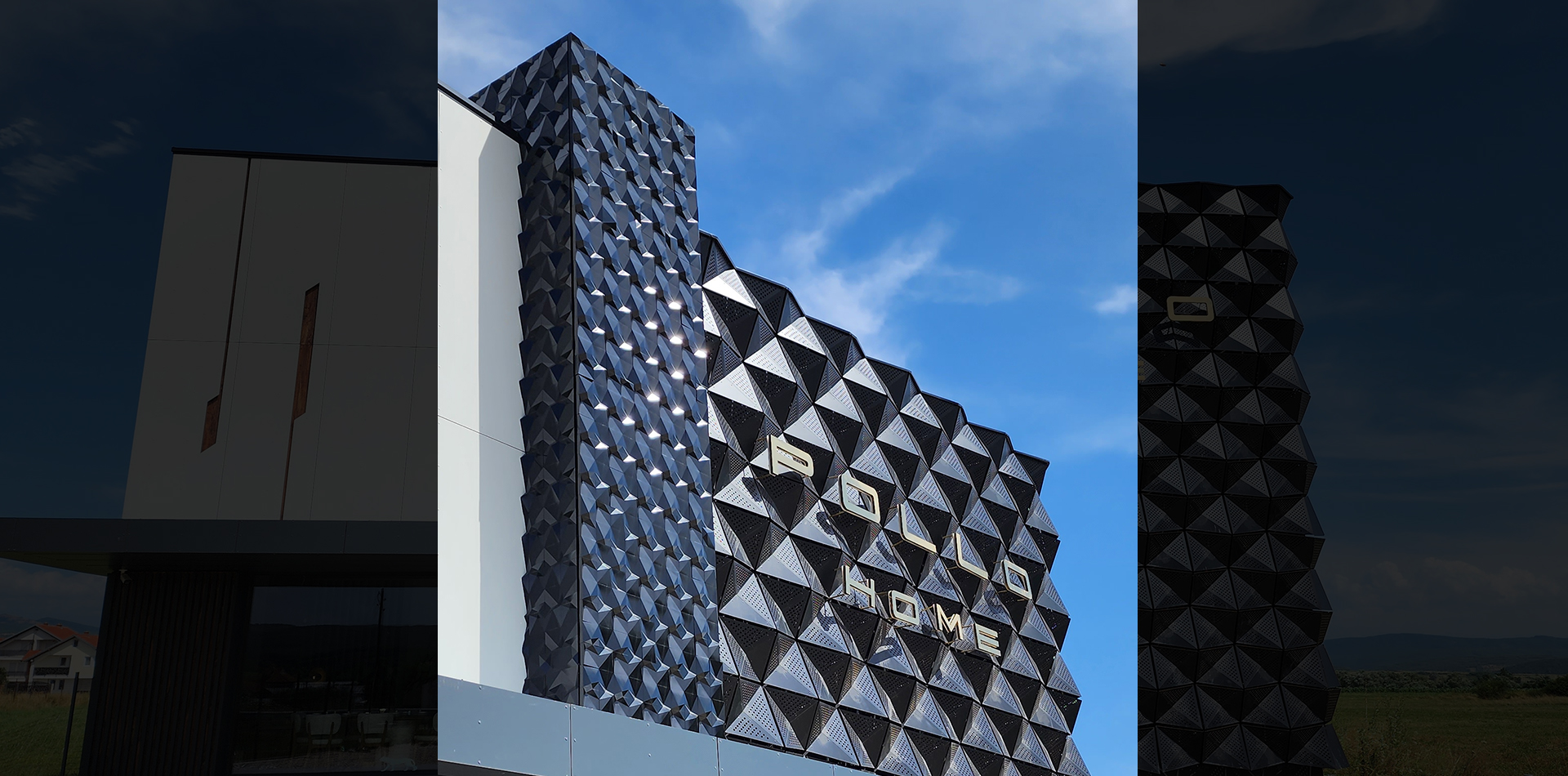 Panele 3d të poliuretanit të vendosura në fasadën e dyqanit të mobileve Pollo Home në Podujevë